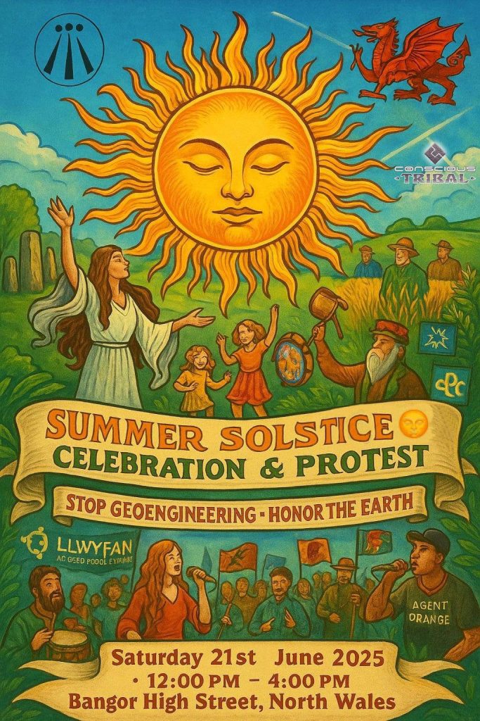 I am hosting a Stop Geoengineering Protest on 21st June 2025, the longest day of the year. We will gather in protest of the chemtrail spraying and in reverence to the sun during a time of solar Geoengineering blocking it. The event is a gathering of the tribes, hosted by a hopeful American activist who sees the spark that awakens humanity beginning with this rally.